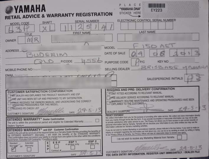 This diagnostic is the latest that I have access to, the engine now has 1002 hours on it and will most likely have between 15 and 20 more by the time it is removed from the boat.